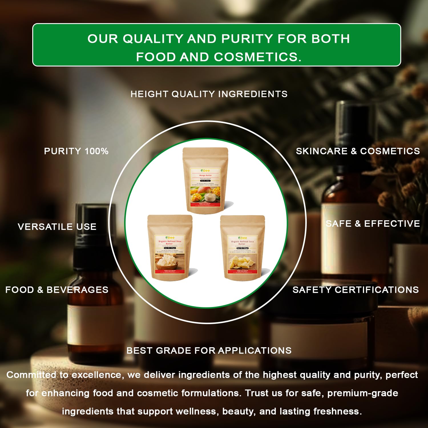 Cocoa Butter contains vitamin E and natural fatty acids that deeply moisturize, soften, and smooth the skin. It helps improve skin texture and may reduce the appearance of scars, stretch marks, and fine lines.