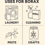 Borax can act as a natural pest deterrent, helping control insects like ants and cockroaches when used safely in corners and entry points. This dual functionality adds extra value to its household use.