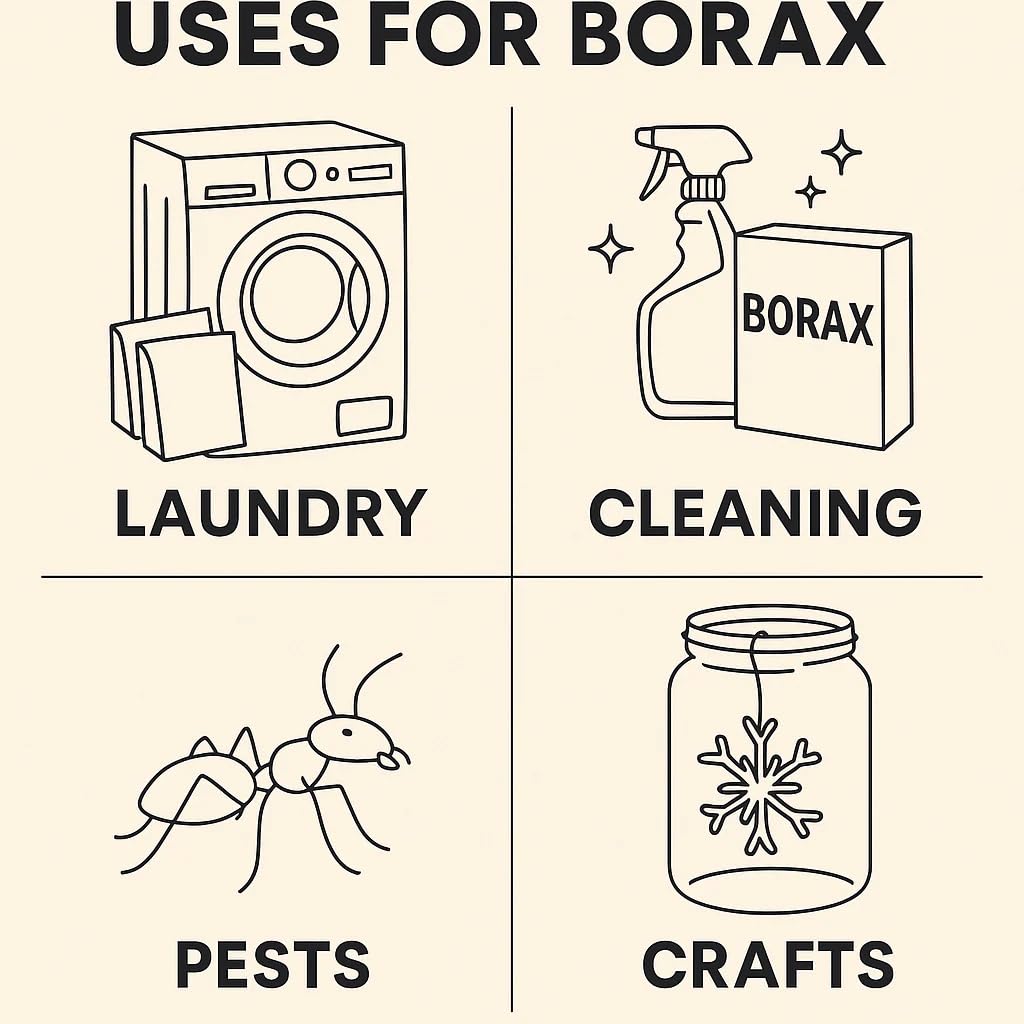 Borax has applications in controlling pests like ants, cockroaches, and other household insects. It can be used safely as a barrier or combined with bait solutions to reduce infestations without relying on toxic chemical sprays.