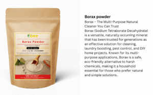 Being a natural mineral, Borax Powder is environmentally friendly and non-toxic when used as directed. Unlike synthetic chemical cleaners, it breaks down naturally and poses minimal risk to humans and pets, making it suitable for homes seeking sustainable cleaning solutions.