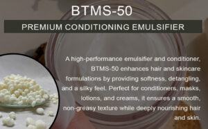 BTMS-50 also serves as an emulsifier in lotions, creams, and body care products, helping blend oils and water for smooth, stable formulations.