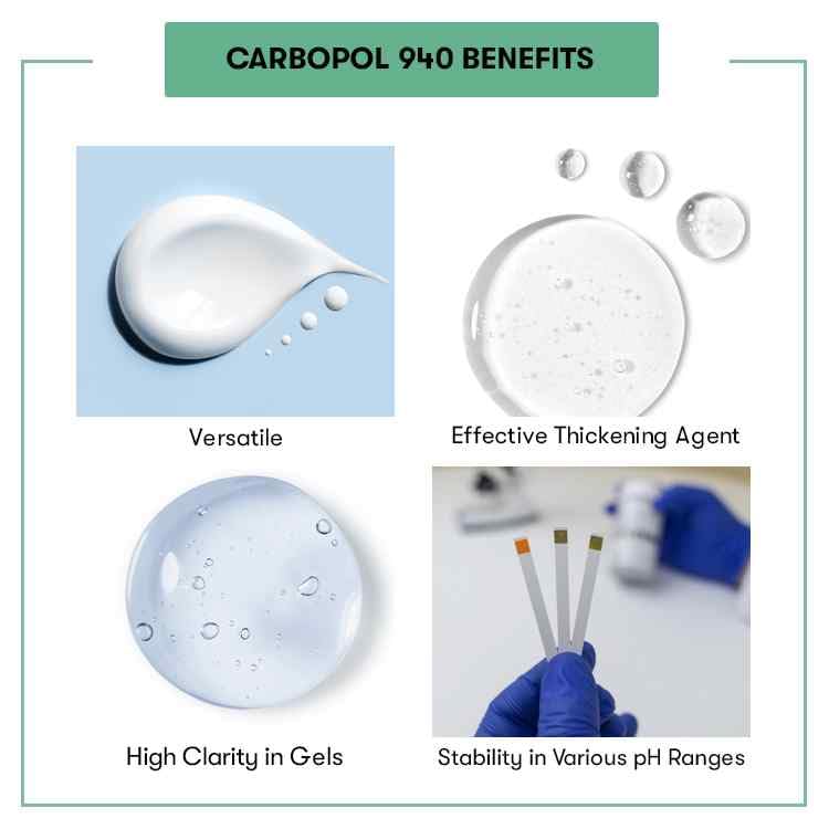 Thickening Agent: Carbomer increases the viscosity of liquids, transforming them into smooth gels or creamy formulations.