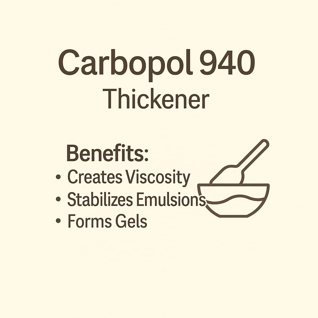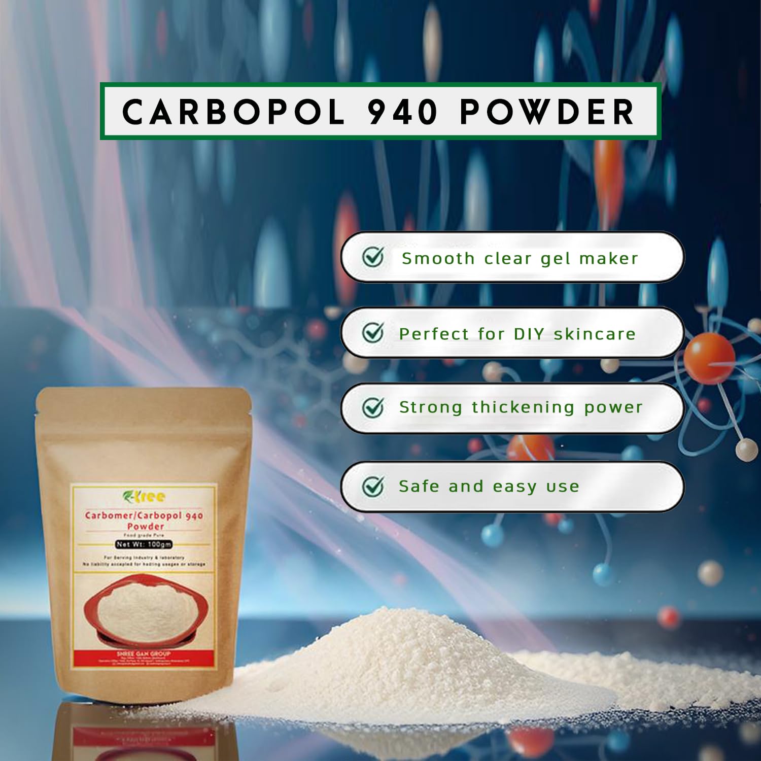 Carbomer 940 is a synthetic polymer made from acrylic acid monomers, cross-linked to form a three-dimensional network. Available in powder or granule form, it swells and hydrates when mixed with water or aqueous solutions, forming a smooth, viscous gel.