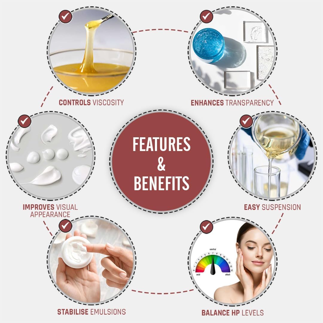 Clear & Transparent Gels: Allows creation of visually appealing, professional-quality cosmetic and pharmaceutical gels.