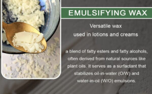 Emulsifying wax binds oil and water together, preventing separation and ensuring a smooth, consistent texture in creams, lotions, and conditioners.
