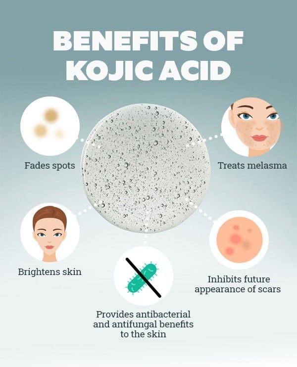 Brightens and Evens Skin Tone: Kojic Acid works by inhibiting tyrosinase, the enzyme responsible for melanin production, helping to reduce dark spots, acne scars, sun damage, and hyperpigmentation. Regular use can lead to a brighter, clearer, and more radiant complexion, giving skin a youthful glow.