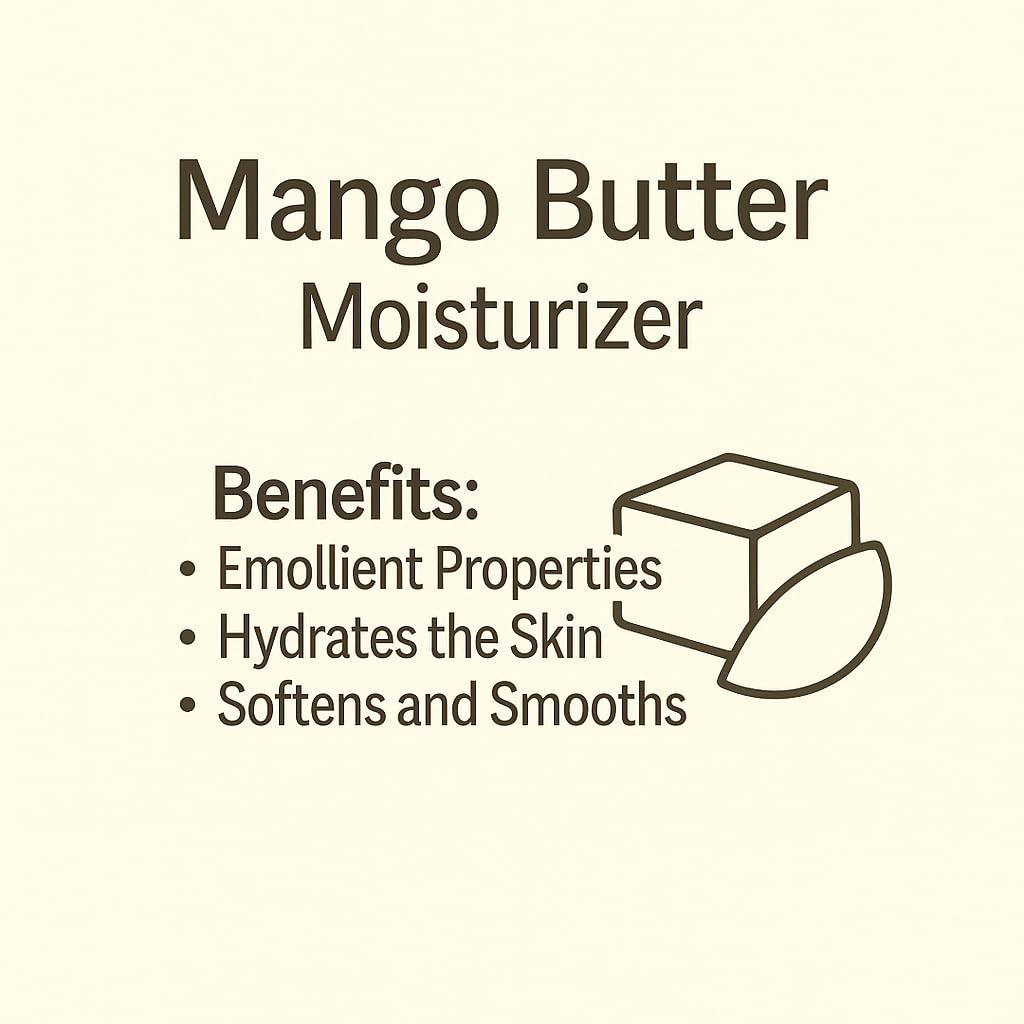 Mango butter provides long-lasting moisture, helping to keep the skin soft, hydrated, and smooth. It is ideal for dry and sensitive skin, preventing dryness and flakiness.