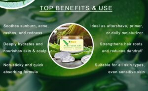 The gel has natural cooling and anti-inflammatory properties, making it ideal for sunburn relief, calming redness, and soothing irritated or sensitive skin.