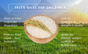 Rich in fiber, vitamins, and antioxidants, this rice aids digestion, promotes satiety, and supports healthy metabolism. Regular consumption can help maintain a balanced diet and contribute to overall health and wellness.