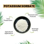 This fine, easy-to-dissolve powder is ideal for use in homemade and industrial applications. From jams, sauces, pickles, and baked goods to yogurt, wine, and fruit juices, Potassium Sorbate ensures your food remains safe and long-lasting. Beyond food, it is equally valuable in cosmetics and skincare, where it prevents microbial growth in creams, lotions, and shampoos, helping formulations stay stable and effective.