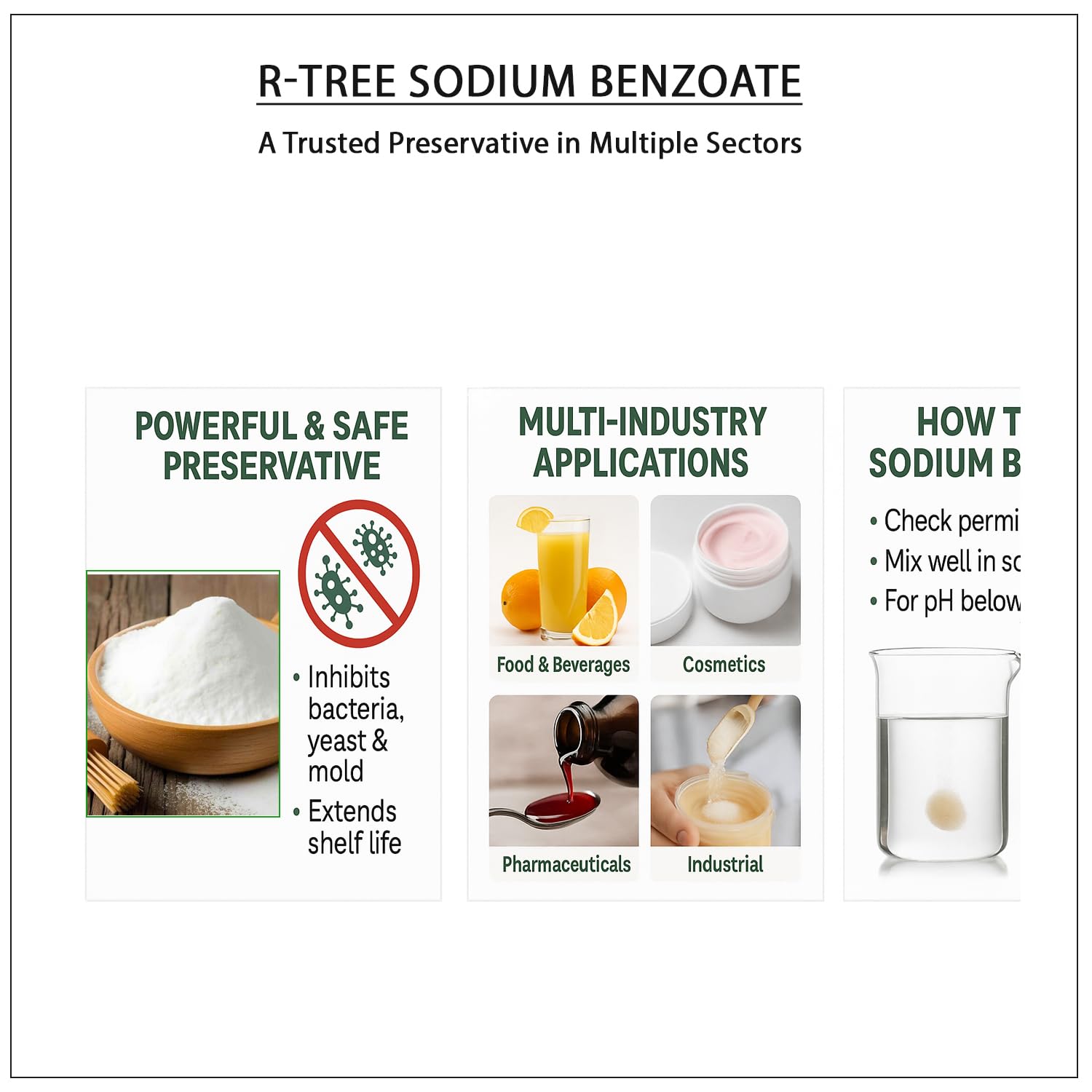 R-Tree Sodium Benzoate Powder is trusted by formulators and home users alike for its consistency, purity, and reliability. Its chemical stability, effectiveness, and compliance with regulatory standards make it an essential ingredient for anyone seeking to preserve products naturally and safely.
